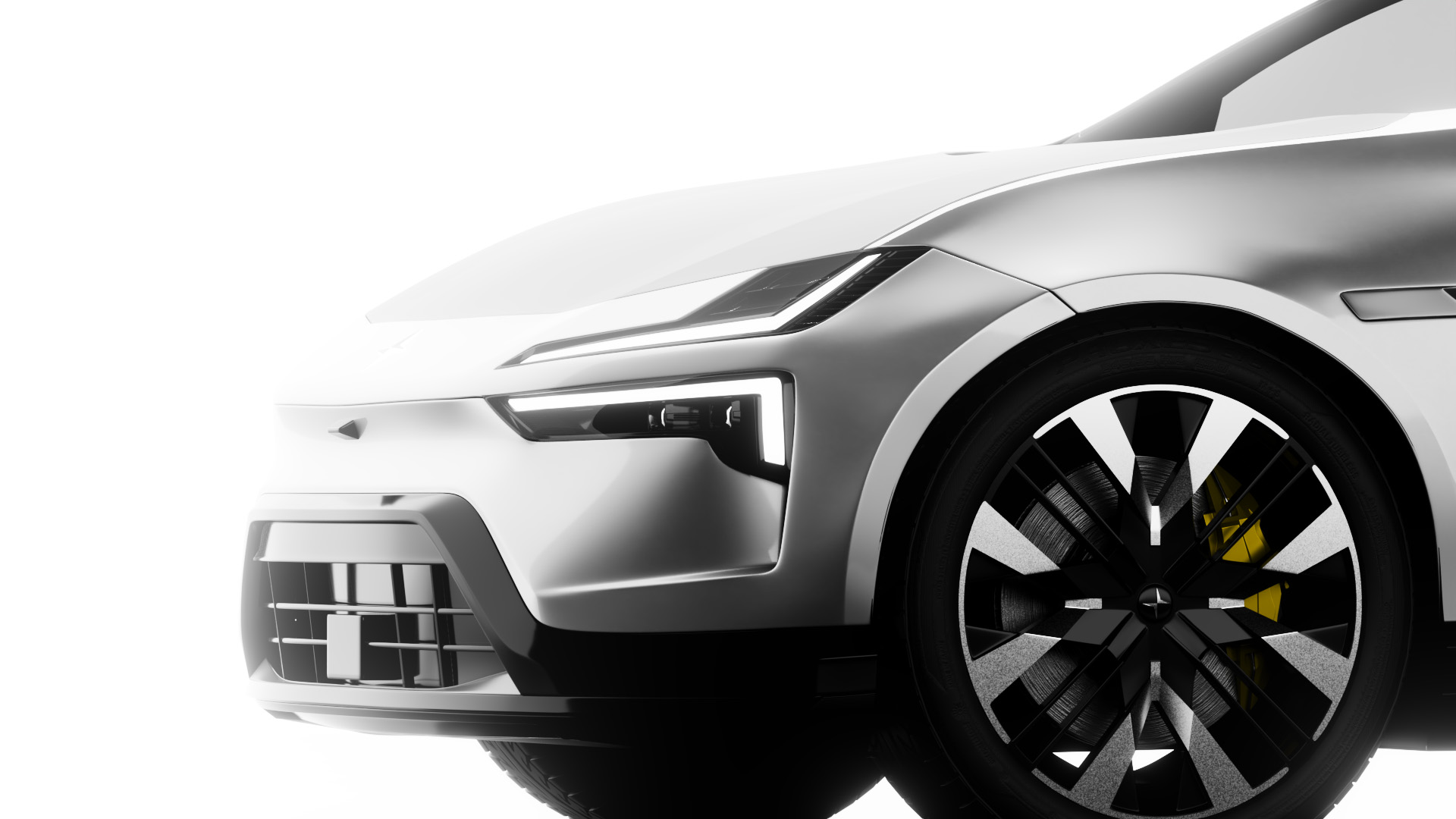 Creation of a detailed 3D representation of the Polestar 4, focused on form, materials, and lighting.